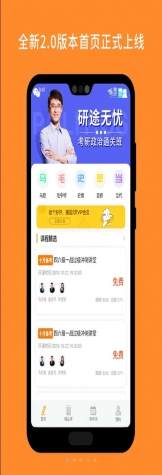 2、丰富的课程能让用户学到更好的知识,享受更好的学习环境,专业老师在线答疑,让用户更好的把握每一个知识点,让大家轻松考研上岸。
