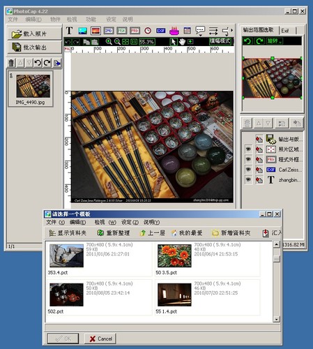 3. 可以将相片的文件名与exif信息(如ISO,快门,光圈等等)打在相片上。