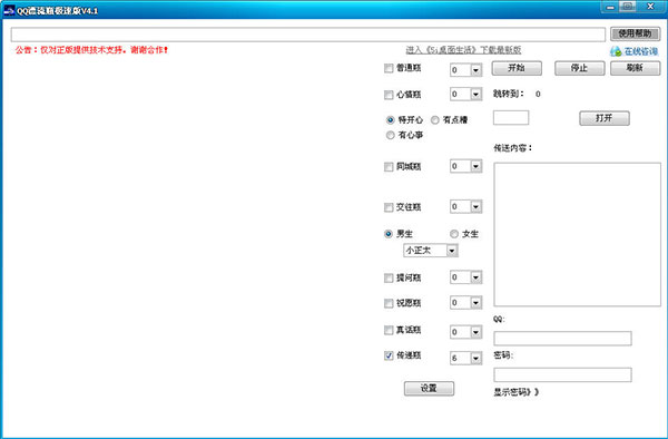 QQ漂流瓶极速版是一款专门针对网络营销人员开发的软件,开发者本着“个性化操作用户做,重复性操作软件做”的原则,让本软件在省时上达到完美:网络正常的情况下20来个账号的任务只要几分钟就能完成,让你的推广更轻松,更愉快。