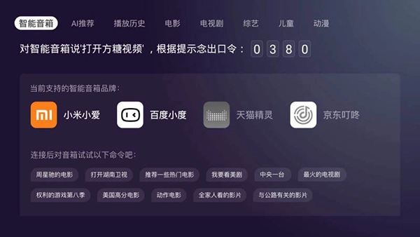 全国首家支持四大音箱平台控制电视,对音箱说“打开方糖视频”