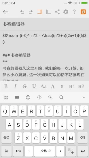 书客编辑器是一款由个人开发者打造的手机富文本编辑应用,具有简洁清爽的界面和无广告的特点。它功能全面,可以帮助用户记录日常生活并完成文学创作。该编辑器支持Markdown语法,并兼容Latex数学公式,还能导入网络图片。此外,它具备智能排版、语法标注、文件共享等超过十种的强大功能,使创作过程变得轻松。书客编辑器还允许用户创建随笔、备忘录、日记、录音、手写笔记及文字笔记等多种形式的内容,并支持网页与手机端的数据同步。