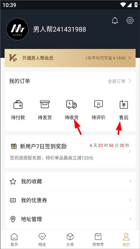 2、退出男人帮APP账号,重新登录男人帮APP后重新支付订单。
