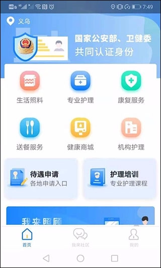 v1.1.0版本【产品简介】 “我来照顾”系统与专业护理机构、社区卫生服务中心及第三方护理机构合作,为失能老人提供专业护理和康复服务。【产品特点】 用户可以在App内申请并使用长护计划、康养计划等套餐。