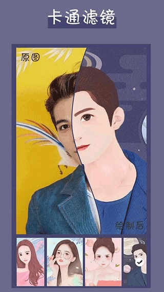 3、智能进行照片,处理多种漫画卡通头像,集合美图、拼图等功能;