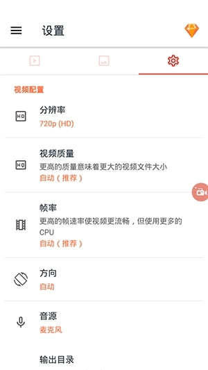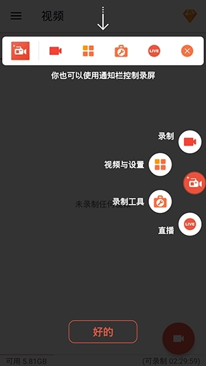 1、打开az录屏软件app,界面中会弹出一个半圈功能键选项,点按其中的相机标志。