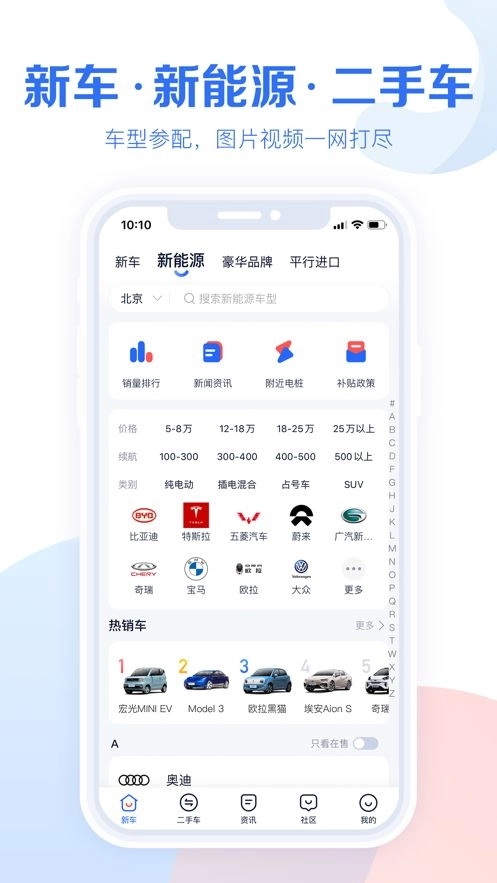 这里提供新车及二手车相关信息,还有资讯评测、图片视频、社区口碑以及经销商报价等内容。同时配备车型对比、购车计算、摇号查询等实用辅助工具。