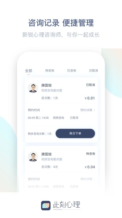 此刻心理app历经层层严格筛选,在数千份申请里,精心遴选出近200位来自五湖四海的心理咨询师,为你送上贴心的成长陪伴,陪你一同走过接纳自我、认识自我的历程。助力大家释放负能量,以良好的心理状态拥抱生活。