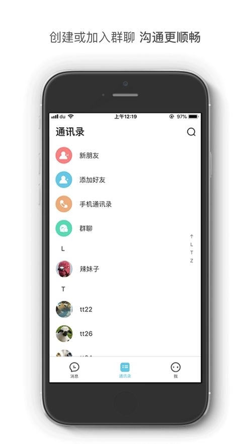 1、既能够与好友展开一对一的单独聊天,也可以加入群组进行多人交流。