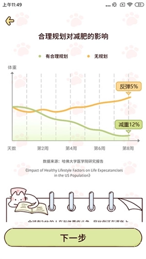 软件可以实时监测用户的体重、体脂等健康数据,并自动记录断食过程中的点滴变化,让用户随时了解自己的身体状况;
