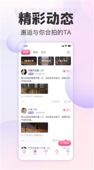 她超甜,附近交友一键开启,随机匹配快速帮你在茫茫人海中锁定理想型。主动出击,心仪对象直接私信,感情火速升温,畅快热聊不停。在这里,分分钟就能邂逅超合拍的Ta。还能随时查看精彩动态,尽享更多元化的趣味社交玩法。