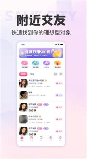 2.多个玩法可以让大家轻松告别尬聊,开启定位之后,系统也会按照地理位置为大家快速推荐附近的人;