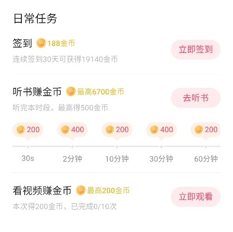 番茄畅听音乐版赚钱的主要方式:签到,听书,看视频。其他听书赚金币是平台主打的功能。