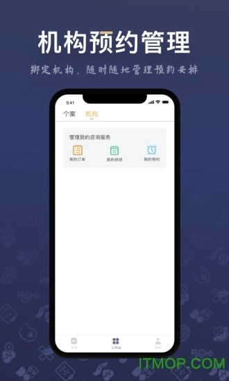 - 通过邀请码激活,实现与机构绑定,从而实时接收机构的预约信息。
