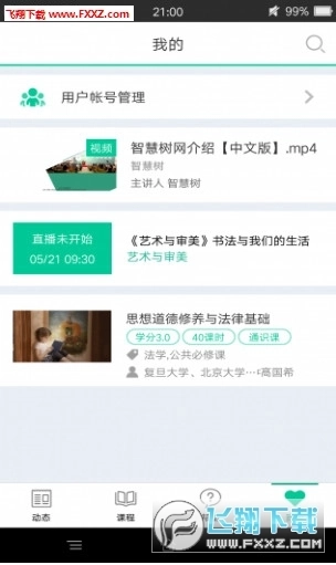 1. 存在智慧树推送的动态信息,能够进行阅读、收藏以及分享。