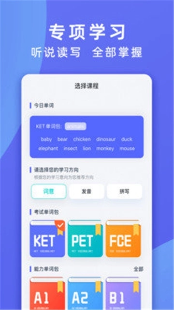 1. 每日都能够借助软件为自己设定学习单词的目标与计划。