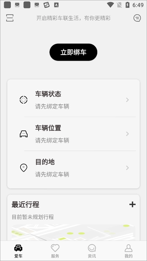 车辆状态服务功能,能展示车辆车门、车窗等的开闭情况,让您用车更放心。不仅如此,它还具备智能安防功能,支持用户开启电子围栏,随时随地对爱车进行监控。英菲智联 APP 还能实时检测爱车胎压、刹车系统等部件的健康状况,助您随时知晓爱车状态。此外,APP 界面设计简洁,操作便捷,像车辆绑定、车主实名认证等操作都能迅速完成,而且全程有客服指导,有需求的用户可在本站下载使用。