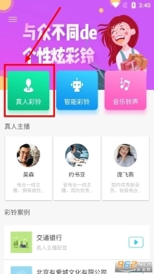 当你打开软件之后,找到并点击【真人彩铃】选项。