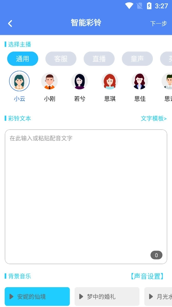 接下来输入彩铃内容,点击【下一步】,依照提示进行操作就行。
