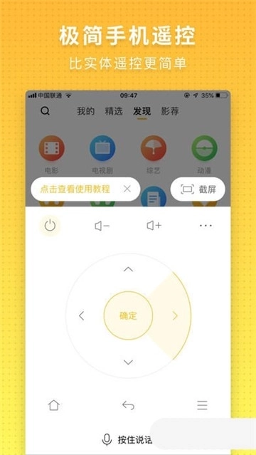 2、手机遥控器将实体线功能键整合为便捷的触摸式操控,操作轻松又快捷。