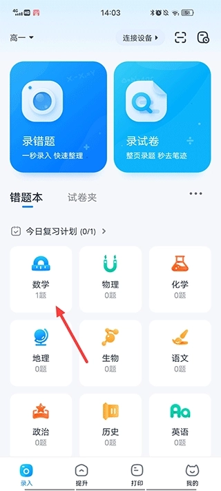 2、可以选择对应的学习科目,让对应的错题保存起来。