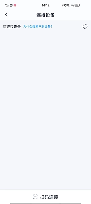 2、可选择通过搜索设备来连接,也可点击下方扫码连接。(连接前请确保设备蓝牙已开启)