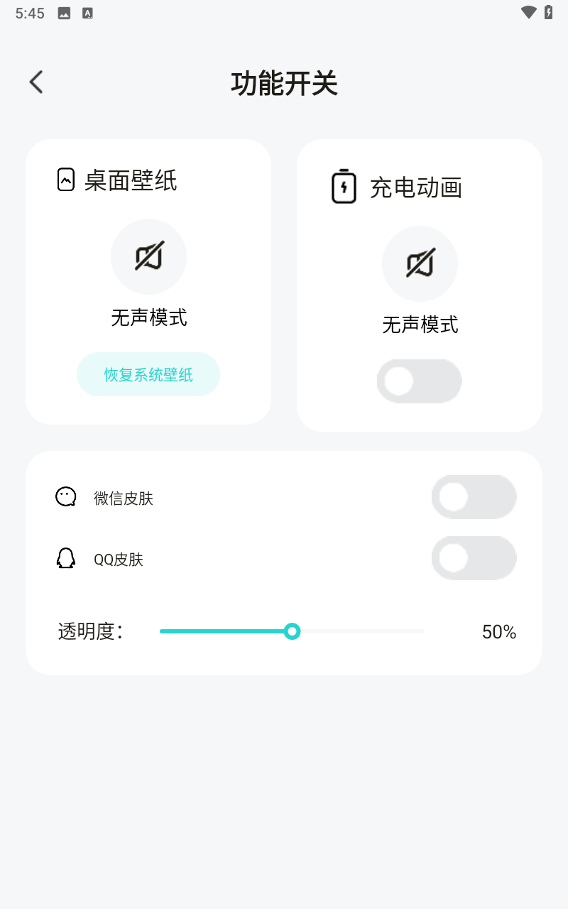 4、我的界面可以设置壁纸声音以及充电动画