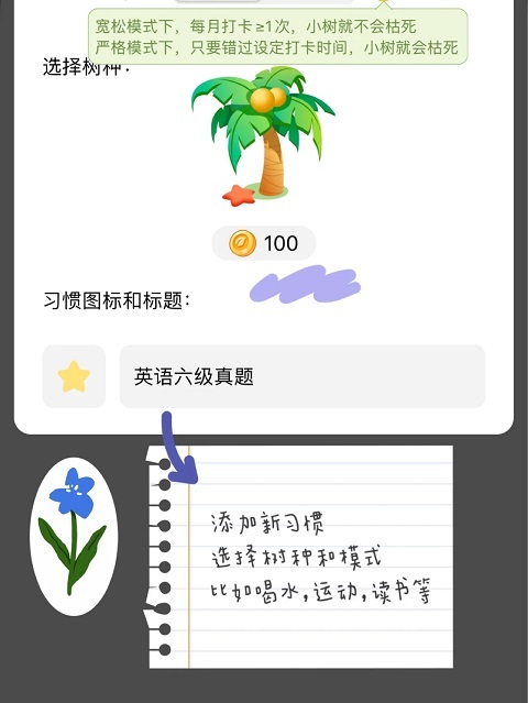 在创建习惯之际,能够挑选模式。需注意的是,一棵树在成长进程里,模式无法更改。而当一棵树培育完成后,于种植新树之时便能够切换模式。