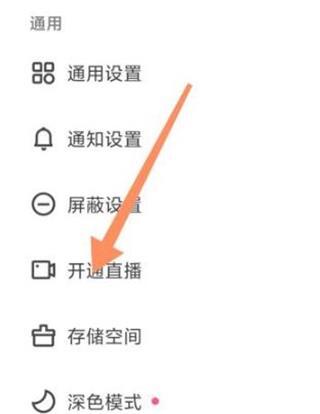3、在通用这一项中,用户可以看到开通直播的选项,点击进入。