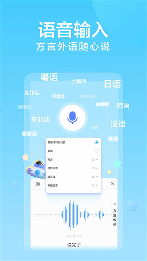 2、方言输入:提供23种方言输入支持,哪怕普通话不标准、带有口音,也可畅所欲言。
