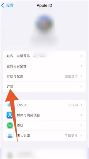 翻转到AppleID界面后,选择点击里面的订阅按钮进入。