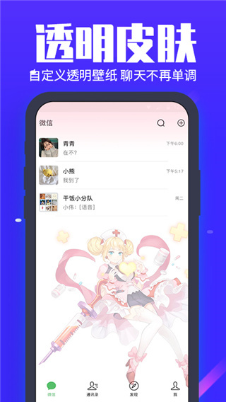 4、可自行定制聊天背景主题,不仅支持透明桌面设置,还支持QQ、微信聊天页面的背景设置。