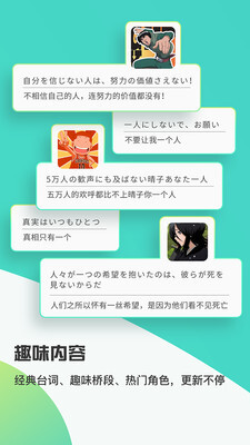 这是一款超有趣的日语学习软件,能让你以趣味配音的形式学习,在玩乐中提高日语水平。而且,还有许多好玩的小哥哥小姐姐在线与你交友互动呢。