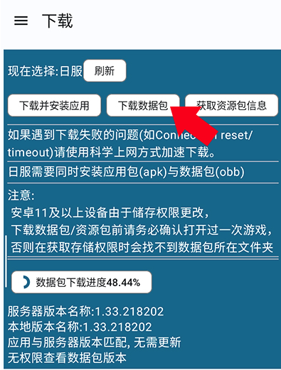 8、再次点击【数据包】,OBB文件将自动开始安装,等待安装完成后,即可正常启动游戏。