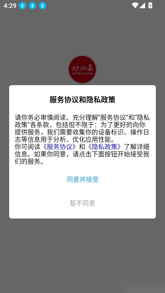 1、首先打开应用点击“同意并接受”按钮来进入中。