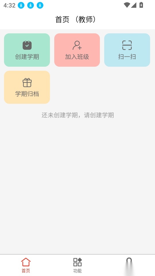4、如此就可以进入软件首页,在功能模块中点击“创建学期”按钮来进行下一步。