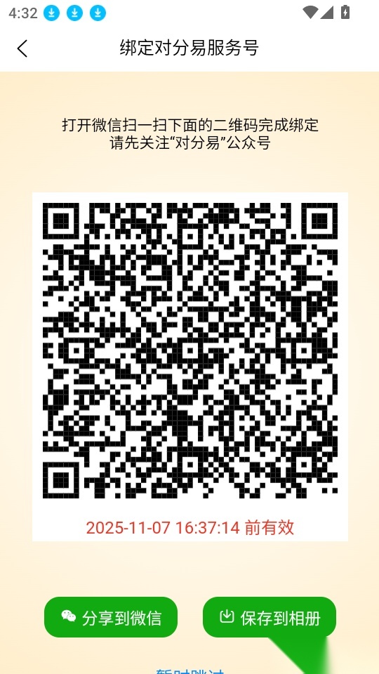 3、然后就可以对出现的公众号界面来点击“暂时跳过”按钮进行下一步。