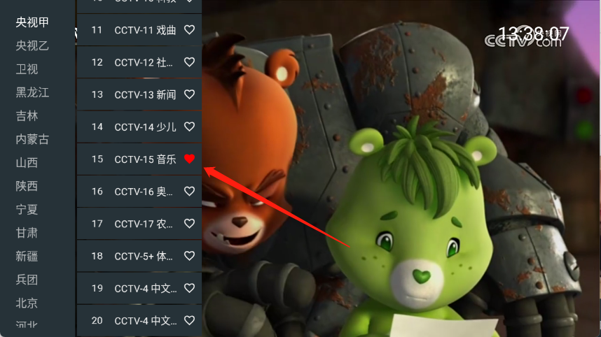 3、长按电视频道后面的爱心按钮就可以收藏了。