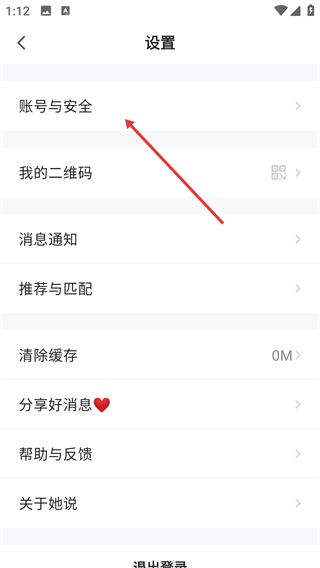 2、在设置页面选择【账号与安全】选项,进入账号安全相关的功能管理界面。