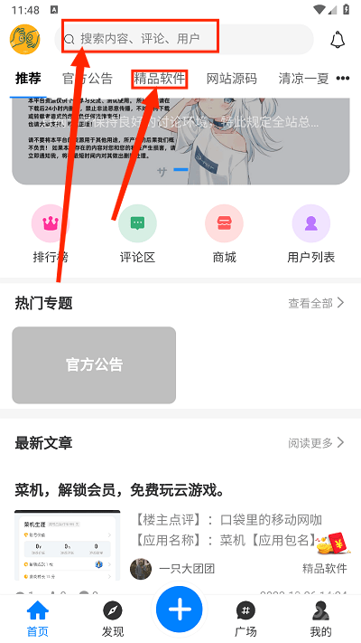 1、打开奇猫社区,点击精品软件或直接搜索想的类型的软件