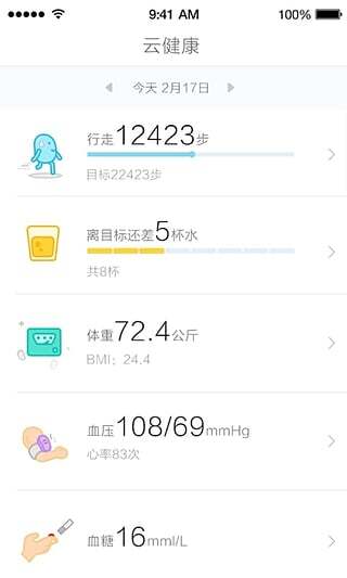 3、云健康还能与智能手环、智能手表等各类智能健康设备相连,让数据可以自动同步和更新。