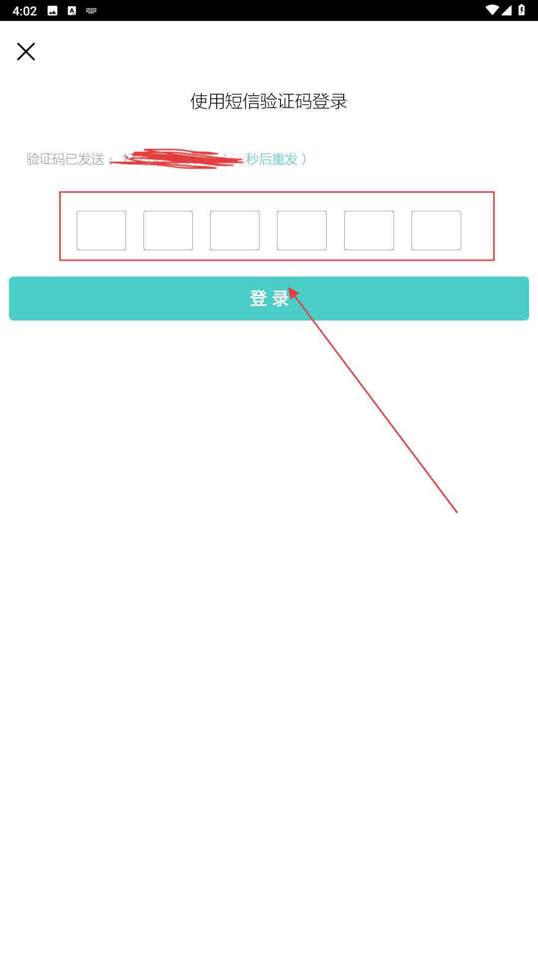 3、把收到的验证码填写到【验证码输入框-六格区域】中,然后点击【登录-按钮】,这样就能完成登录操作了。
