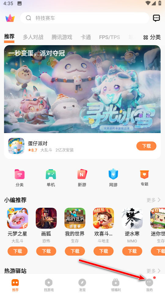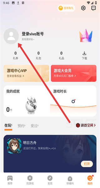 1.打开vivo游戏中心点击右下角我的。