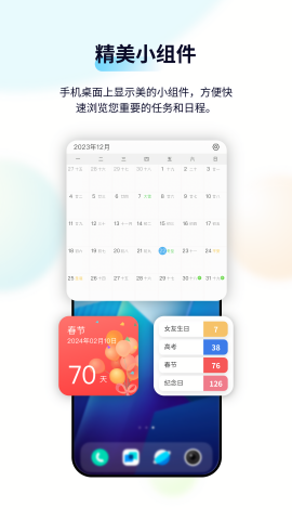 可以在手机主屏幕直接查看日历信息,同时保证小组件不会遮挡其他重要内容。
