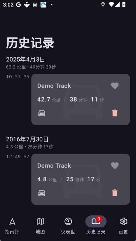 3.具备行驶记录功能,可随时查阅过往每一段行程的详细信息。