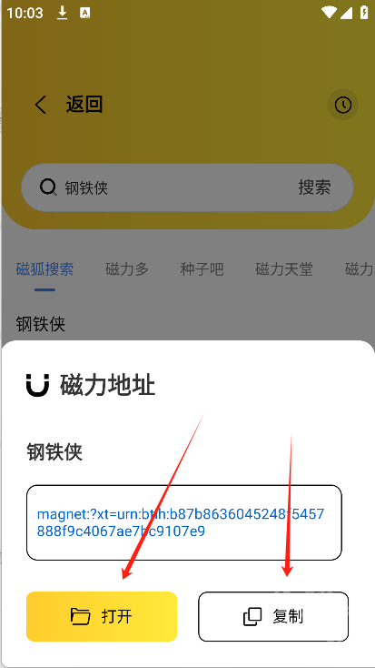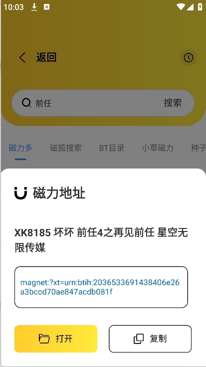 7、点击相应的磁力链接,您可以选择打开或复制选项。