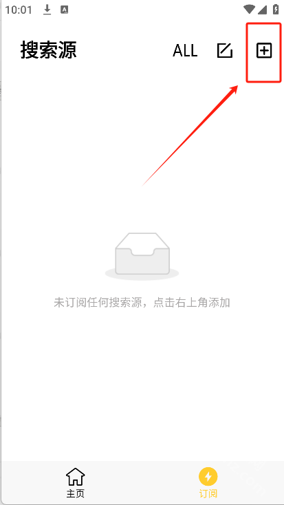 5、按照上述步骤订阅源,完成订阅后返回首页点击搜索框。