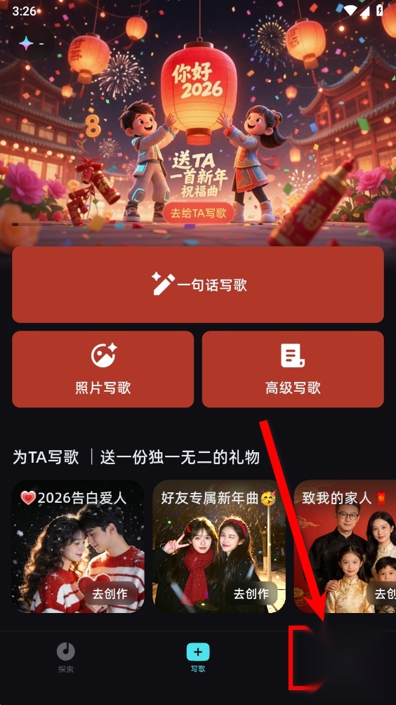2、在创作界面点击一键写歌