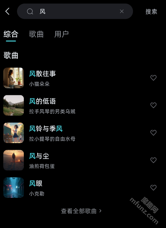 4、搜索完成后即可听歌。