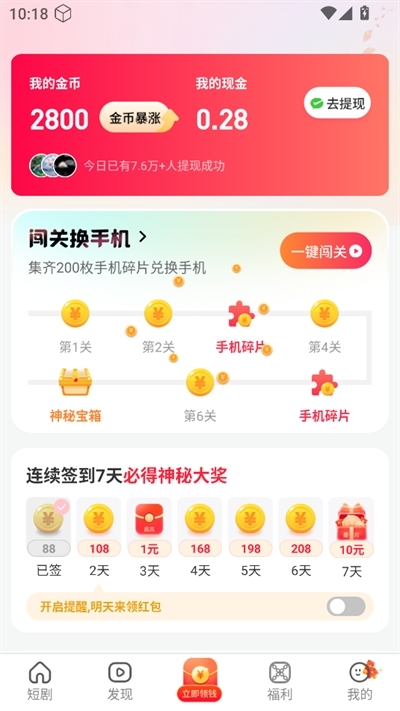 星辉剧场汇聚了丰富多样的短剧资源,涵盖现言、古言、都市等多种题材类型。此外,用户在观看短剧的同时还能获取金币奖励,当金币积累到一定数额后,即可申请提现,兑换比例约为1000金币兑换0.1元。这是一款既能免费追剧又能赚取收益的实用软件,期待大家的使用。