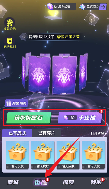 3、在【祈愿】中我么可以获取祈愿石,然后参与抽奖。